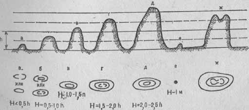 Зображення рельєфу горизонталями: 1 - січні площини одного