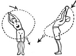 витискає верхню вгору аж на висоту чола; опісля верхня посуває нижню руку вниз,