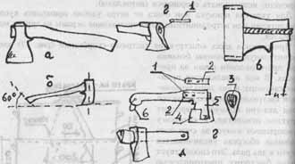 Найбільш раціональною вважається лопатева форма сокири, при якій робочий край як би зміщений назад, лезо закруглене, жало заточене клиноподібно. Такий сокира можна зробити з великої сокири, обрізавши його (рис. 18 а).
