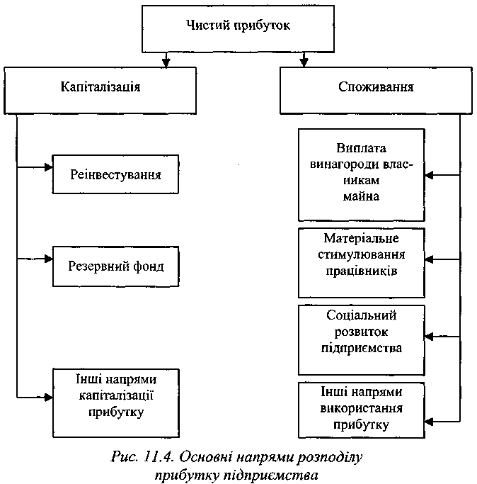Рис. 11.4. Основні напрями розподілу прибутку підприємства