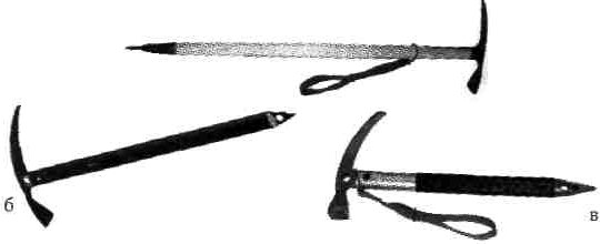 Рис. 5.37. Льодоруби: а - з дерев'яним древком; б - металевий, в - айсбайль