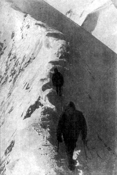 Рис. 16. Транспортування потерпілого по крутих гірських схилах вимагає особливої уваги і майстерні страховки рятувальників і саней