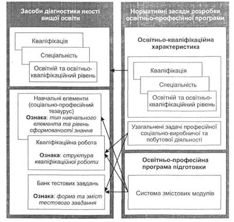 Засоби діагностики якості вищої освіти мають бути узгоджені з освітньо-кваліфікаційною характеристикою та освітньо-професійною програмою фахівця відповідного освітньо-кваліфікаційного рівня.